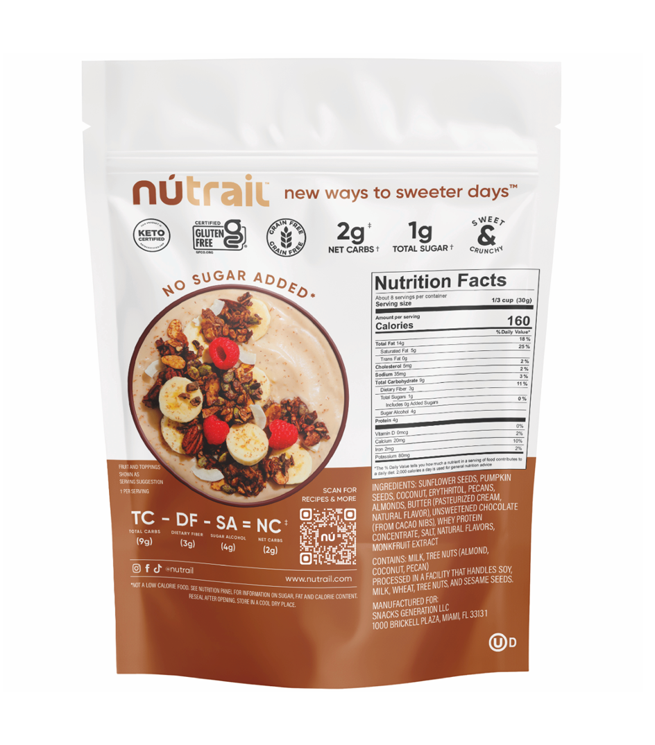 This one’s for our chocolate lovers! Low-sugar, low-carb as always – so no worries there. Our signature blend of nuts and seeds, paired with unsweetened chocolate and naturally sweet monk fruit. A perfect pair for your favorite nut butter or a healthy topping for your favorite dessert – you really can’t go wrong.